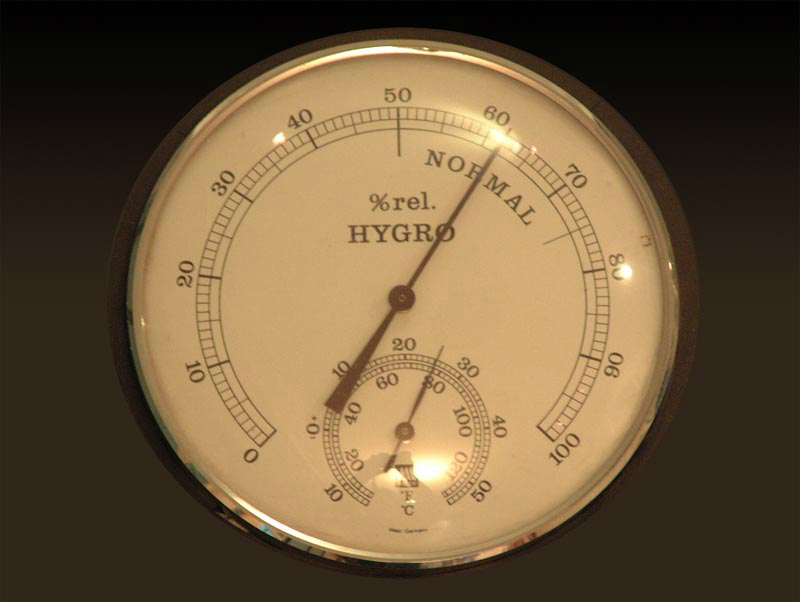 Higrômetro: É mais utilizado para medir a umidade presente nos gases, mas também no estudo do clima. São instalados em locais fechados para garantir a segurança de objetos (peças de museus, livros) onde a presença em grande escala ou em baixa escala de umidade podem ocasionar tais problemas.