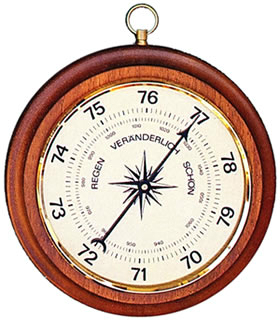 Barômetro: Foi criado pelo Evangelista Torricelli em 1643, e funciona porque o ar aplica uma pressão com seu peso. Ele observou que: "se a abertura de um tubo de vidro fosse cheia com mercúrio, a pressão atmosférica iria afetar o peso da coluna de mercúrio no tubo". Sendo assim, podemos calcular a pressão multiplicando a gravidade pela densidade do mercúrio pela altura da coluna de mercúrio.